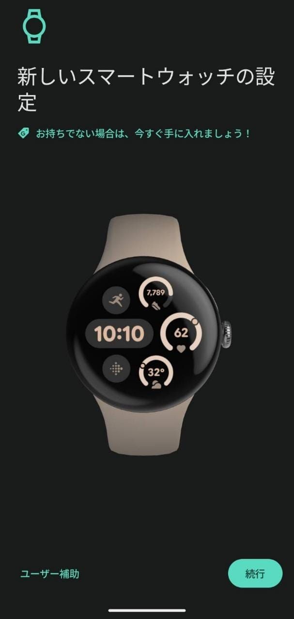 次に、スマホにインストールしたGoogle Pixel Watchアプリを起動します。アプリを開くと、「続行」というボタンが表示されるので、タップしてペアリングを進めましょう。