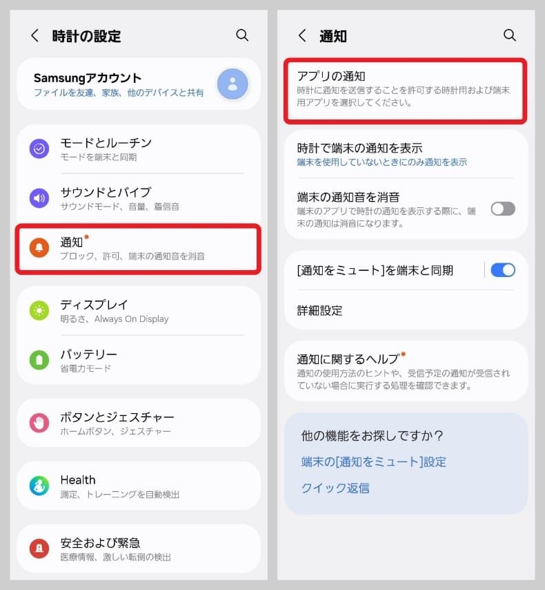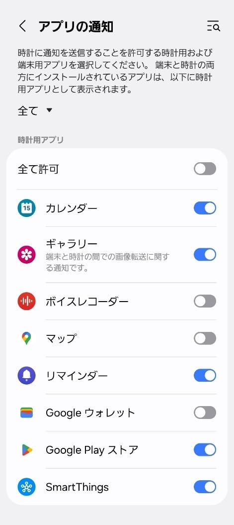 通知設定は、Samsung Galaxy Watchの画面から行いましょう。