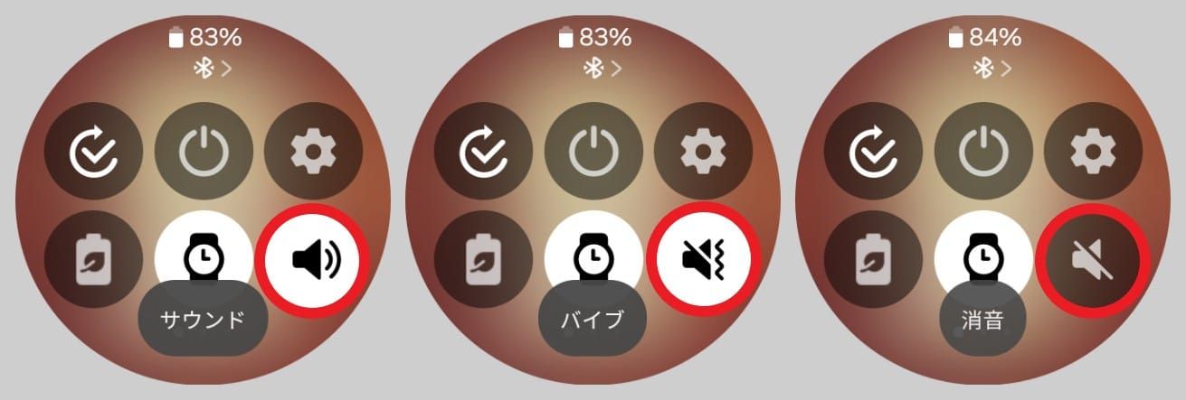 - 「スピーカー」アイコンをタップすると、通知方法(サウンド/バイブ/消音)を変更できます