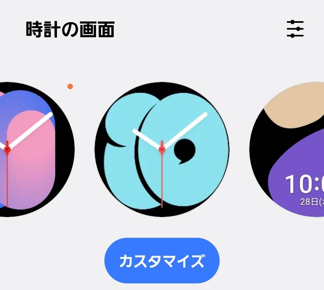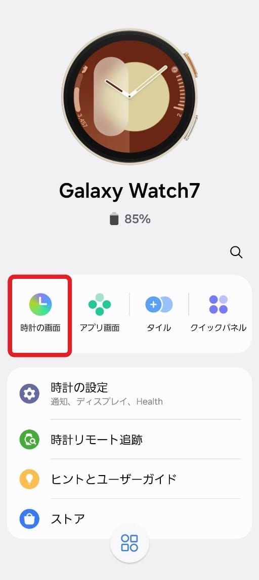 1. 「Galaxy Wearable」アプリを起動し、「時計の画面」を選択