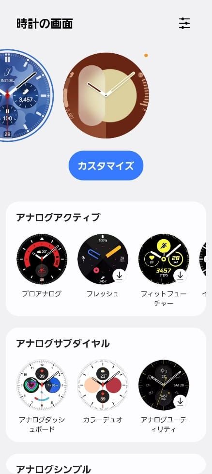 Samsung Galaxy Watchで選べるウォッチフェイスのデザインは、実に多彩。スマホで撮影したお気に入りの写真を背景に設定できるほか、クラシックなアナログ時計風や機能性重視のデジタル文字盤、さらにはアニメーション付きのデザインまでさまざま! ライフスタイルや気分に合わせて、自由にカスタマイズを楽しめるのも魅力です。