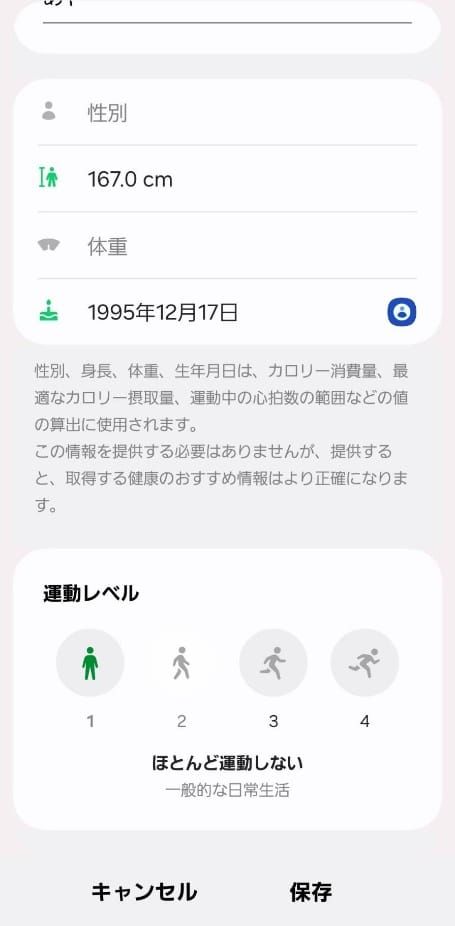 「Samsung Health」アプリに身体データを登録