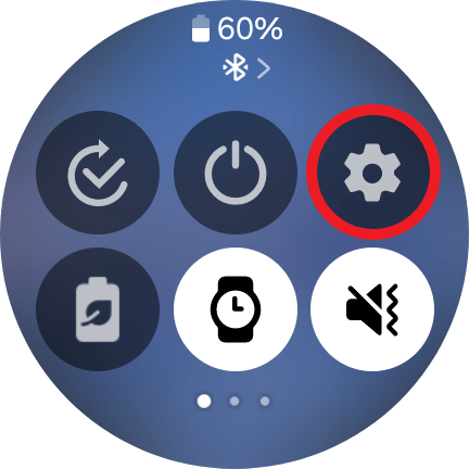1. Samsung Galaxy Watchの画面を下にスワイプし、「設定」を開く