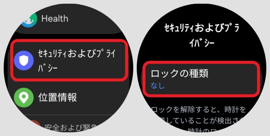 セキュリティ対策の基本といえるのが、「画面のロック」。これを有効にすることで、万が一Samsung Galaxy Watchを紛失した場合でも、他人に中身を覗かれたり、操作されたりするのを防げます。