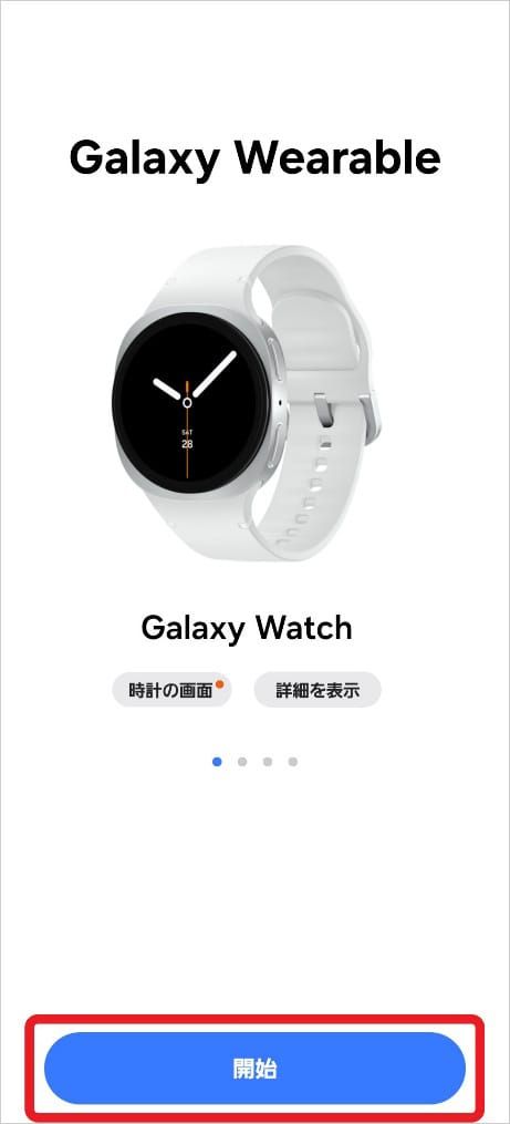 もし通知が表示されない場合は、Galaxy Wearableアプリからペアリングすることも可能。アプリを起動して画像のようなお知らせが表示されたら、「開始」を選んで操作を進めてください。