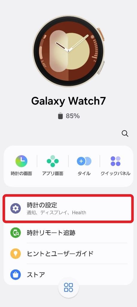 1. Galaxy Wearableアプリを起動し、「時計の設定」を選択